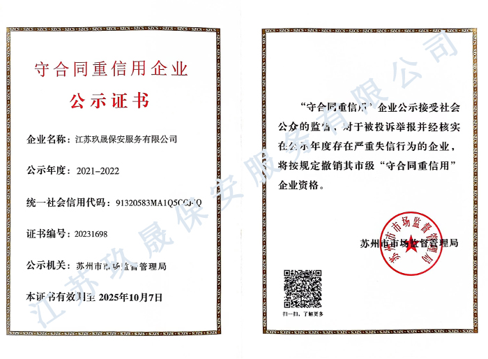 • 自從蘇州保安公司人員進駐,管理僅僅有條,安全整潔都上了好幾個臺階! ---綠地**** 2022-06-30